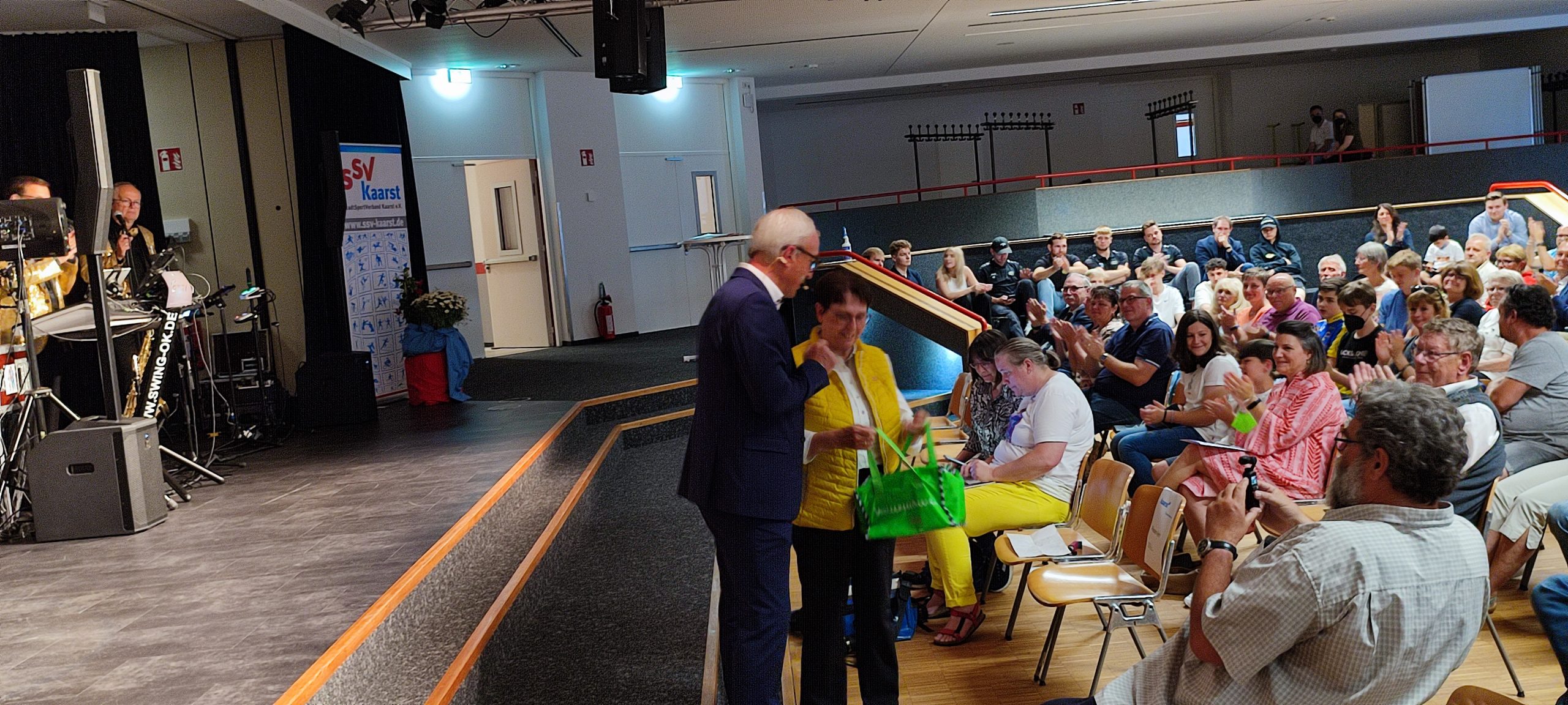 Es hat wieder Spass gemacht! Nach zwei Jahren Zwangspause aufgrund der Corona-Pandemie ist die Sportlerehrung der Stadt Kaarst endlich zurück: Zahlreiche Sportlerinnen, Sportler und Ehrenamtler wurden am Sonntag, den 23.05.2022 für ihre herausragenden Leistungen geehrt. Die traditionsreiche Veranstaltung fand erstmals und mit großem Erfolg im Georg-Büchner-Gymsasium statt.